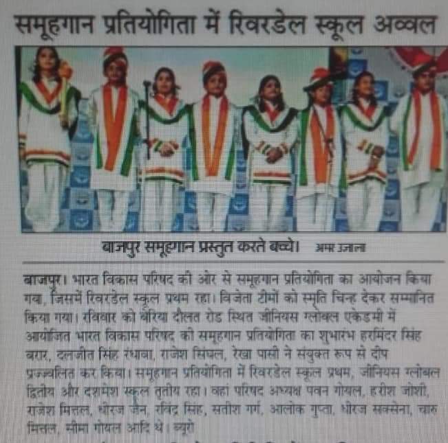 Riverdale choir stood first in Group Song Competition organised by Bharat Vikas Parishad at Block Level, Bazpur