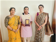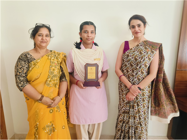Keerti Goyal of Class XII bestowed with a trophy from Inspire Award Manak Programne at the District level.